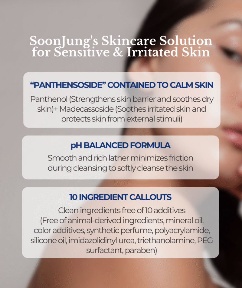Sensitive skin, irritated or inflamed skin, dry skin, damaged skin barrier, redness-prone skin, post-procedure skin, those seeking a minimal-ingredient cleanser, anyone needing a gentle second cleanser for double cleansing